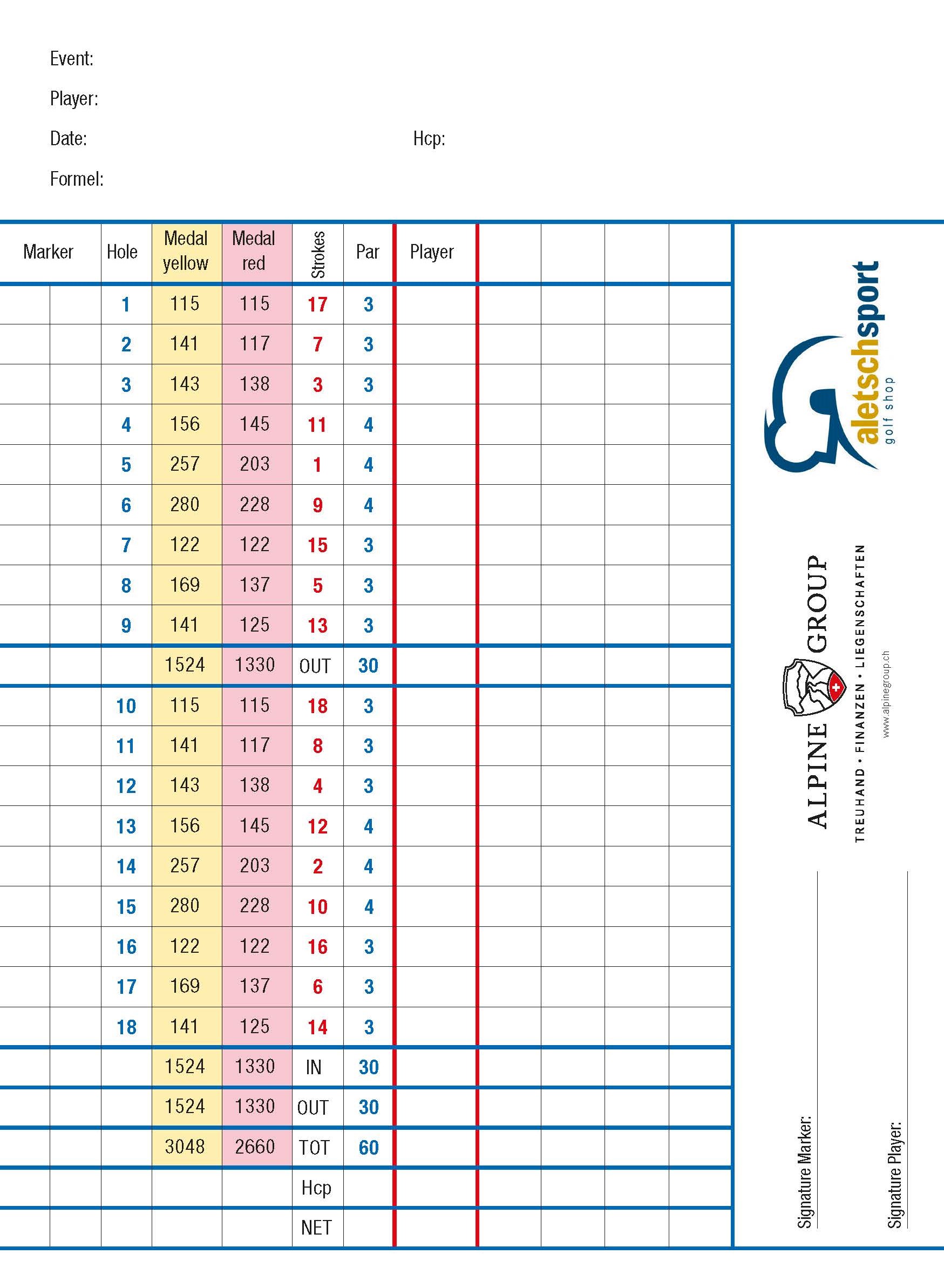 Zeitlimitiere pro 9 Loch: 3er Partie 1 1/2 Std. 4er Partie 1 3/4 Std.